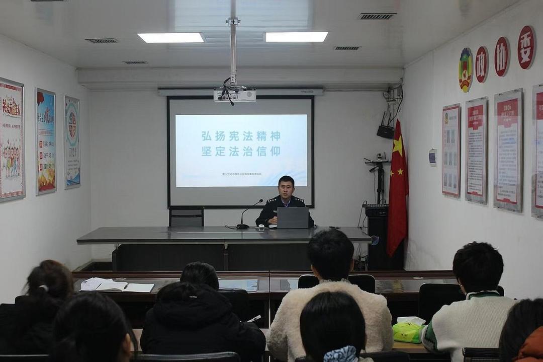 大有派出所民警深入哈尔滨市第七十二中学,以“宪法护航成长,警徽守护平安”为主题开展法治宣讲活动。民警以“什么是宪法”为切入点,用动画短片与真实案例相结合的方式,以法论事,将防范电信网络诈骗、校园安全等知识融入到宪法宣传活动中,重点讲解关于未成年人受教育权、生命健康权的保护条款,教育引导学生树立宪法权威、增强法治观念和自我保护意识,让学生明白“宪法离我们并不远,它就在课堂上、在上下学的路上”,切实提升学生遵守宪法、运用法律的意识。